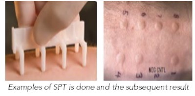 A Skin Prick Test (SPT) is usually done to test for allergy. A standardised allergen is introduced into the epidermis (top layer of the skin) using a plastic lancet. This may cause mild discomfort but is tolerated well by most patients.