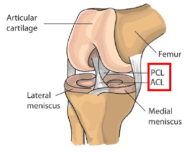 The cruciate ligaments form an 'X' configuration with the knee joint and keeps the joint in place. The anterior cruciate ligament (ACL) is located in front of the posterior cruciate ligament (PCL) and helps to control rotation of the knee as well.