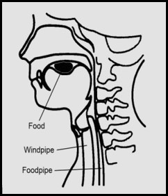 At this stage of swallowing, the airway is sealed and the sphincter (valve) at the top of the foodpipe opens up to allow the food/fluid to slide down with muscular action.