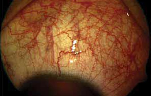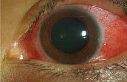 A red eye due to scleritis.