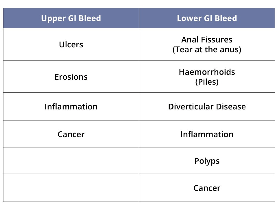 The table below summarises some of the possible causes of gastrointestinal bleed: