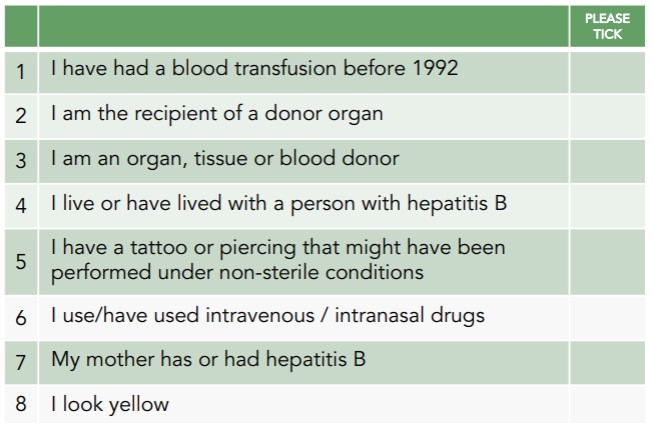Checklist for Hepatitis B
