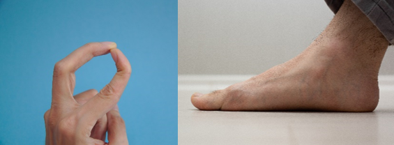 Left: Flexible index finger "(double-jointed"); Right: "Flat foot".