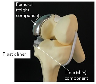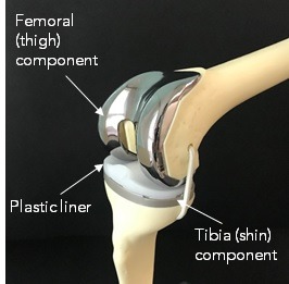 Knee Replacement is a surgical procedure whereby the damaged cartilage is replaced by metallic and plastic parts, called prostheses.