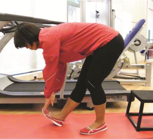 Keeping your knees straight, lean forward and bend at the hips until you feel a stretch at the back of your thigh.