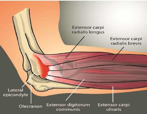 Forceful grasping or repetitive flicking movements of the wrist may lead to small tears and inflammation of the tendons moving the wrist that are attached at the elbow. The most commonly affected tendon is the Extensor Carpi Radials Brevis (ECRB).