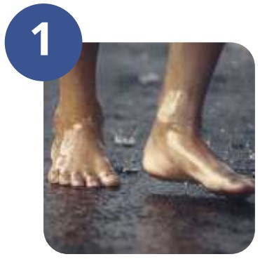 1. Walking barefooted typically in communal areas
