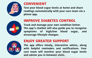Patients enrolled under the PTEC Home Diabetes monitoring programme will measure their blood sugar at home using a blood glucose meter. The readings can be saved in the Health Discovery+ app. Patients can view all past readings in a chart that tracks changes in their condition over time. This monitoring allows high or low blood sugar readings to be flagged up for further action by the care provider. In addition, patients will receive timely and interactive advice, helpful reminders and notifications to take their blood sugar readings at least once a week, as well as receive care support when required.