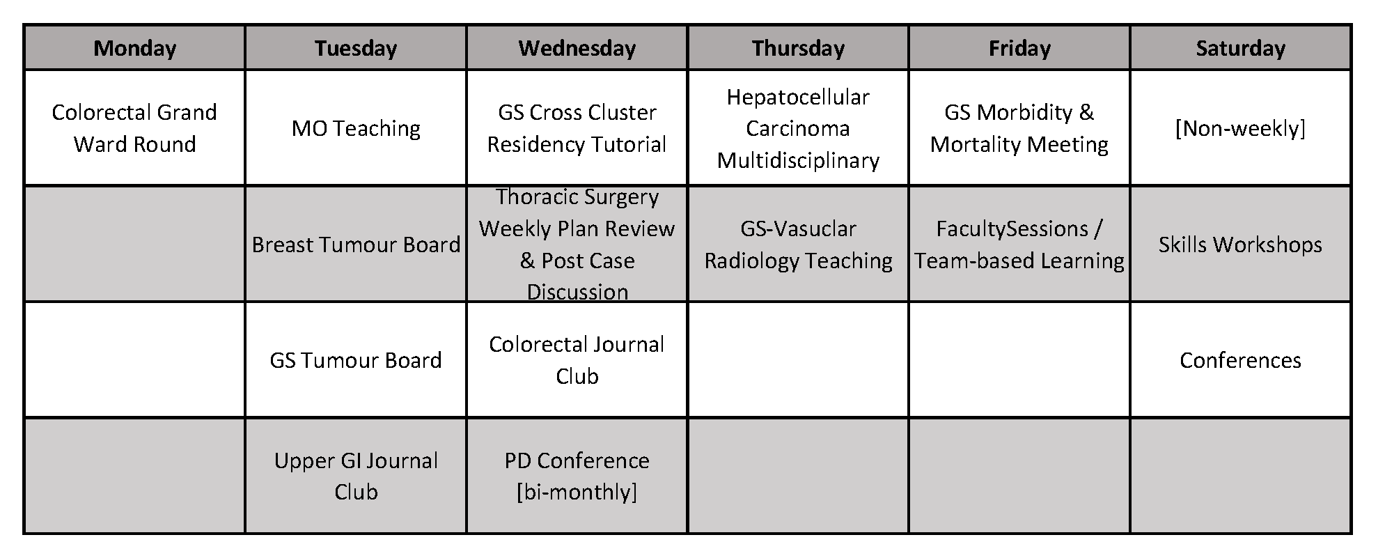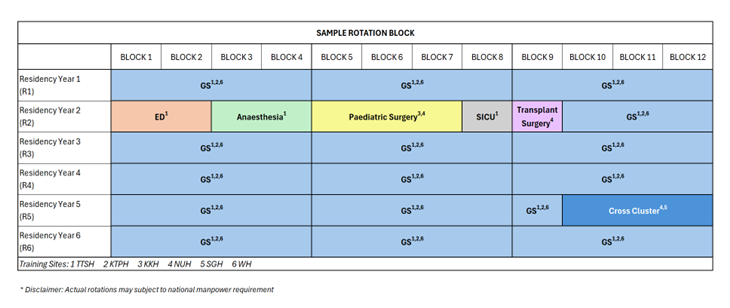 To widen his/her exposure, the resident can rotate to other surgical-related specialties such as paediatric surgery, and thoracic surgery.